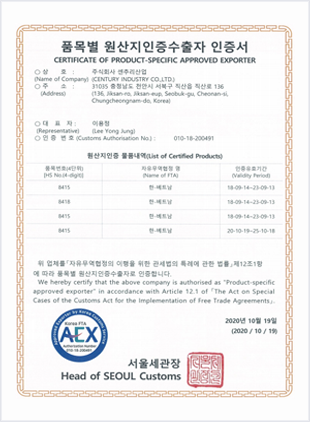 원산지인증수출자 인증서 페이지 정보 작성자 최고관리자 댓글 0건 조회 65회 작성일 25-09-20 08:56 목록 답변 본문 원산지인증수출자 인증서 이전글생산성경영체제 확인서 25.09.20 다음글한국냉매관리기술협회 EPA 25.09.20 댓글 0 댓글목록 등록된 댓글이 없습니다.
