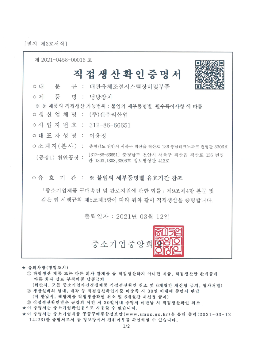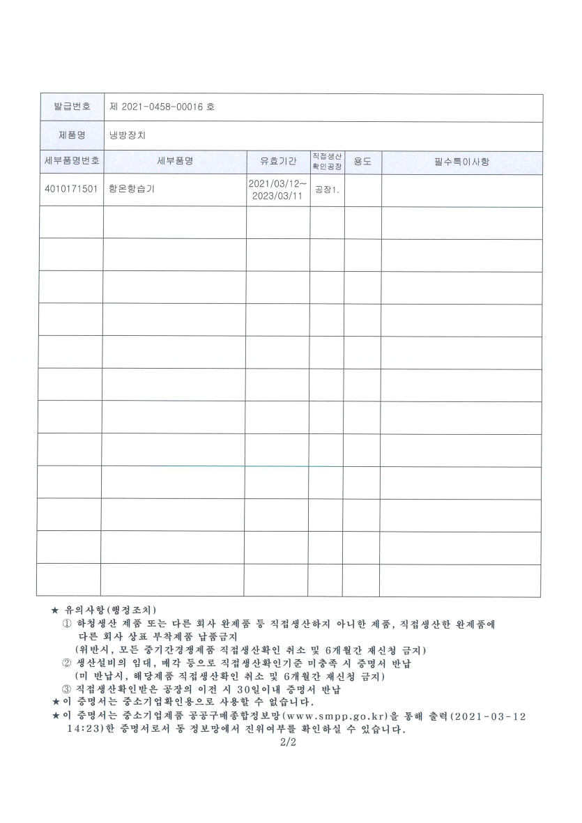 직접생산확인증명서